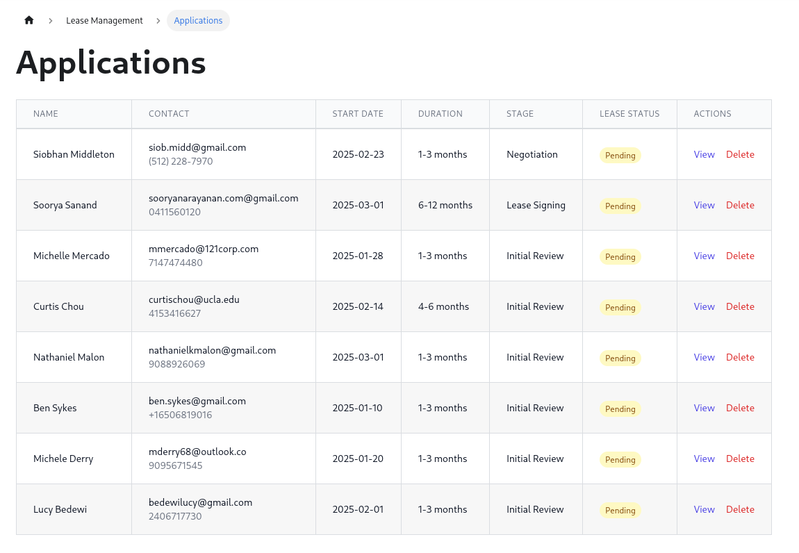 Applications will be listed on the lease management page.